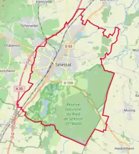- "صفحة سيليستات في خريطة الشارع المفتوحة". OpenStreetMap. اطلع عليه بتاريخ 4 مارس 2021. الوسيط