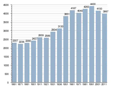 في سنة 1861 بلغ عدد السكان 2٬307 نسمة، وتطور العدد ليصل في سنة 2011 لـ 3٬997 نسمة.