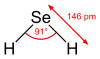للمركب بنية جزيئية منحنية، وتبلغ قيمة الزاوية H−Se−H مقدار 91°، أما طول الرابطة Se–H فيبلغ 146 بيكومتر.[5]