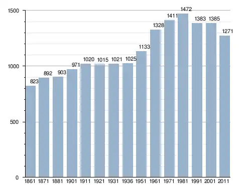 في سنة 1861 بلغ عدد السكان 823 نسمة، وتطور العدد ليصل في سنة 2011 لـ 1٬271 نسمة.