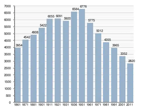 في سنة 1861 بلغ عدد السكان 3٬954 نسمة، وتطور العدد ليصل في سنة 2011 لـ 2٬820 نسمة.