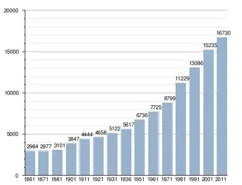 في سنة 1861 بلغ عدد السكان 2٬984 نسمة، وتطور العدد ليصل في سنة 2011 لـ 16٬730 نسمة.