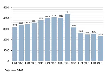 |CitationClass=تم تجاهله (مساعدة) - Superficie di Comuni Province e Regioni italiane al 9 ottobre 2011 — تاريخ الاطلاع: 16 مارس 2019 — الناشر: المعهد الوطني للإحصاء
