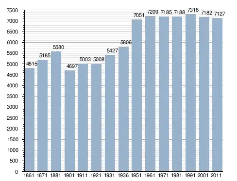 في سنة 1861 بلغ عدد السكان 4٬815 نسمة، وتطور العدد ليصل في سنة 2011 لـ 7٬127 نسمة.