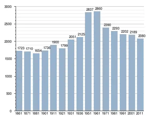 في سنة 1861 بلغ عدد السكان 1٬723 نسمة، وتطور العدد ليصل في سنة 2011 لـ 2٬080 نسمة.