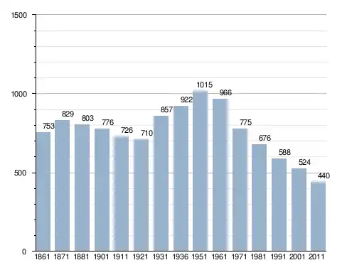 في سنة 1861 بلغ عدد السكان 753 نسمة، وتطور العدد ليصل في سنة 2011 لـ 440 نسمة.