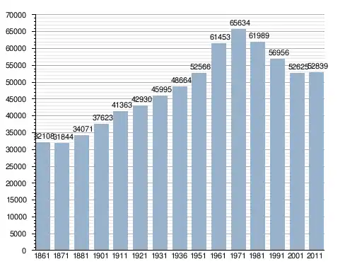في سنة 1861 بلغ عدد السكان 32٬108 نسمة، وتطور العدد ليصل في سنة 2011 لـ 52٬839 نسمة.