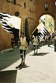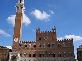 في أوائل القرن الثاني عشر حلت بلدية ذاتية الحكم محل الحكومة الارستقراطية السابقة. أصبحت مناصب القناصل الذين يحكم جمهورية شيئا فشيئا أكثر شمولا لعامة الناس، كما زادت أراضي البلدية بخضوع نبلاء الاقطاعيات المحيطة في قلاعهم المحصنة للسلطة الحضرية. شهدت جمهورية سيينا نزاعا داخليا بين النبلاء والحزب الشعبي، وعادة ما عارضت سياسيا منافستها العظيمة فلورنسا، وفي القرن الثالث عشر غالبا ما كانت غيبلينية في مواجهة فلورنسا غويلفية (شكل هذا الصراع خلفية لبعض كوميديا دانتي).