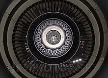 ريش مرواح المرحلة الاولى تم صنعها من التيتانيوم، وذات شكل مقوس، وبارتفاع يصل إلي 68 بوصة.