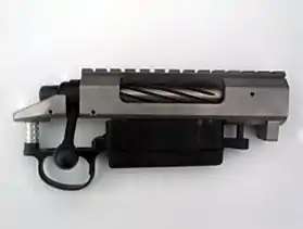 إن عمل Timberwolf عبارة عن عمل مخروطي من الفولاذ المقاوم للصدأ يدويًا مع برغي جانبي ومقبس للطرد الأيمن. الترباس هو مسمار دوار مع عجالت قفل مزدوجة أمامية بالإضافة إلى مقبض قفل واحد في المؤخرة.[4] يتطلب دوران 90 درجة. البرغي هو مخددًا بشكل حلزوني جزئياً مما يقلل من الوزن ويوقف مزاليج الحطام. يستخدم قاذف الكباس المزدوج ومستخرج نوع الخطاف لإزالة حالات الخرطوشة المشتعلة. يساعد هذا في إنشاء إجراء سلس للغاية موثوق للغاية. يساعد مقبض القفل الإضافي في الجزء الخلفي في منع انحشار الترباس عند وضع دائرة أخرى. على الرغم من عدم استخدامها من قبل الجيش الكندي، فإن الشركة المصنعة تقدم جهاز استقبال التيتانيوم كبديل للصلب غير القابل للصدأ المستخدم في جهاز الاستقبال C14. استخدام التيتانيوم يقلل من وزن العمل تيمبر وولف الترباس.