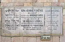 لوحة افتتاح شارع الملك جورج الخامس باللغات الإنجليزية والعربية والعبرية