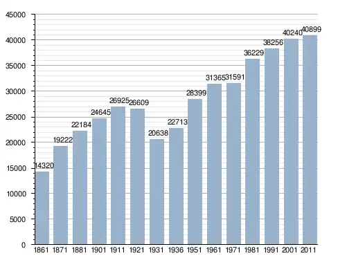 في سنة 1861 بلغ عدد السكان 14٬320 نسمة، وتطور العدد ليصل في سنة 2011 لـ 40٬899 نسمة.
