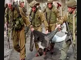 ![]() سحب الجنود الإسرائيلين لجسد شاكر حسونة | |