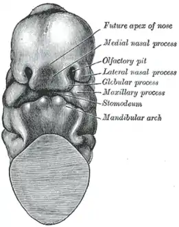 ![]() نهاية رأس جنين بشري يبلغ عمره ما بين ثلاثين إلى واحد وثلاثين يوماً نهاية رأس جنين بشري يبلغ عمره ما بين ثلاثين إلى واحد وثلاثين يوماً | |