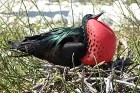 - والفرقاطات لها اجنحة طويلة (حجمها يصل إلى 2.3 للذكور) وذيل متشعب طويل، ومنقار معقوف. والأنثى لها عنق أبيض وأما الذكر له عنق أحمر على شكل جيب تحت الحلق وتتضخم خلال موسم التزاوج لجذب الإناث.