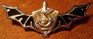 وقام أحد مقاتلي السرية في سنوات الستينيات بتصميم شعارها، خفاش يرتدي مرساة سلاح البحرية، سيف الجيش ولغم بحري.[4]