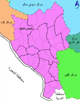 القرية الرئيسية هي قرية شباس الملح، ويتبعها 5 قرى فرعية و58 عزبة وكفر ونجع: