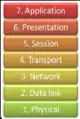 لقد تم تقسيم الوظائف إلى سبعة أقسام وكل قسم من هذه الوظائف اصطلح تسميته بالطبقة – وهذه الطبقات وهمية بالطبع – ولسهولة حفظ ترتيبها يمكن استخدام أوائل الكلمات من المقولة الشهيرة: *(Please Do Not Trust Sales People Always)* الطبقات الثلاث الأولى (السفلية) تعتمد على الهاردوير , بينما تعتمد الطبقات الثلاث العليا على السوفت وير، وتستخدم الوسطى كصلة وصل بين الخدمات المتعلقة بالتطبيقات والخدمات الشبكية . ولكي نبني شبكة لا بد من توفير الأجزاء الرئيسية مثل الأجهزة الطرفية (محطة عمل)، أجهزة الشبكة (Network Devices)والوسط الناقل (Transmission Media). تتألف OSI Model من سبع طبقات وهي موضحة بالصورة ....[2]