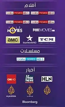 باقة الأفلام والأخبار لشبكة قنوات بي إن.