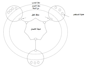 - الطبقة الثالثة: الإشراف على العلاقة بين الحواسب المُتصلة مع الشبكة، وهي ترتبط بنظم التشغيل فيها.
