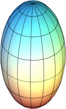 |CitationClass=تم تجاهله (مساعدة) - A derivation of this result may be found at "Prolate Spheroid - from Wolfram MathWorld". Mathworld.wolfram.com. 7 October 2003. مؤرشف من الأصل في 21 أكتوبر 2019. اطلع عليه بتاريخ 24 يونيو 2014. الوسيط