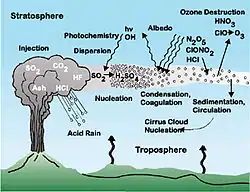 حتى عهد قريب في 1991 عندما حدث ثوران لبركان طبقي في جبل بيناتوبو في الفلبين، انخفضت درجة حرارة المناخ العالمي بشكل بسيط على مدى سنتين إلى ثلاث.[2]