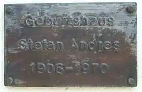 ![]() لوحة تذكارية في موقع ولادة شتفان أندريس | |