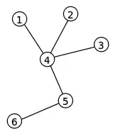 شجرة مبيانية لها 6 رؤوس و 5 فروع