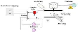 يمكن قياس قيمة مباشرة باستخدام قوانين فرداي للتحليل الكهربائي. فتلك القوانين هي علاقات كمية على أساس الأبحاث الكهروكيميائية التي نشرها مايكل فاراداي سنة 1834.[5] في تجربة التحليل الكهربائي، هناك تطابق واحد إلى واحد بين الإلكترونات المارة خلال انبوب أنود إلى الكاثود والأيونات التي على اللوحة أو الخارجة من الكاثود أو الأنود. فيقاس اختلاف الكتلة للأنود أو الكاثود، والشحنة الكلية خلال الإنبوب (والتي يمكن قياسها كزمن صحيح للتيار الكهربائي) ويؤخذ بالاعتبار الكتلة المولية للأيون، فنستنبط من إحداهما.[4]