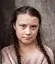 غريتا تونبرج | ولدت في 2003 | ابتداءً من أغسطس 2018، قامت غريتا بالاحتجاج أمام البرلمان السويدي، وكانت تحمل لافتة مكتوب عليها بأحرف سوداء على خلفية بيضاء تقرأ "الإضراب المدرسي من أجل المناخ". ثم خاطبت رؤساء دول العالم في الأمم المتحدة، وقابلت بابا الفاتيكان، ودخلت في سجال مع رئيس الولايات المتحدة، وألهمت 4 ملايين شخص للانضمام إلى إضراب المناخ العالمي في 20 سبتمبر 2019 حين احتشد هؤلاء في أكبر مظاهرة بتاريخ البشرية للمطالبة بالتحرك من أجل وقف تغير المناخ.[55] | [56] |