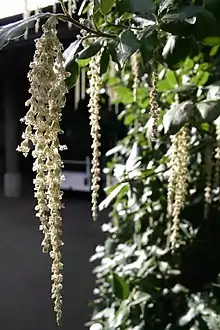 - شرابة الحرير صفصافية الأوراق (الاسم العلمي:Garrya salicifolia)