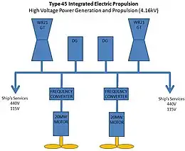 إن النظام الذي يستخدم كل من محركات الديزل والتوربينات الغازية لتوليد الكهرباء لإمداد المحركات الكهربائية، دون أي انتقال ميكانيكي من أيهما للرفاص (المروحة/الدافع/الداسر)، لا يصنف على أنه CODLAG ، ولكن يُعَرف بالدفع الكهربائي المتكامل IEP أو متكاملة الدفع الكهربائي الكامل IFEP مثل هذه المنظومة هي قيد الاستخدام على بعض سفن الركاب مثل RMS Queen Mary 2 ، والتي تضم تجمع من مولدات الديزل للأحمال الأساسية، ومولدات التوربو لأحمال الذروة. وهناك بعض السفن الحربية التي تستفيد من هذه التقنية مثل مدمرة البحرية الملكية البريطانية Type 45 والمدمرة الأمريكية زومولت (DDG-1000 / DD (X
