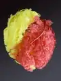 شكل الشرايين التاجية. الأيمن: بالأصفر، الأيسر: بالأحمر.