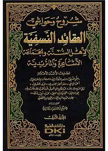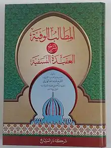 - شرح خيالي في دلهي عام 1870م وعام 1327هـ، مع حواشي عبد الحكيم السيالكوتي، وفي عام 1326هـ مع الحواشي السابقة، وفي الأستانة عام 1297هـ مع كتلي وبهش، وفي القاهرة عام 1297هـ حواشي قرة خليل، وطبع من هذه الشروح أيضا: شرح الحسن شاهد (أبو الحسن بن الفضل) في بهار عام 1327هـ كما طبع شرح رمضان أفندي في دلهي عام 1327هـ. وكتاب (المطالب الوفية شرح العقيدة النسفية)، للشيخ عبد الله الهرري المعروف بالحبشي المتوفى سنة 1429هـ.