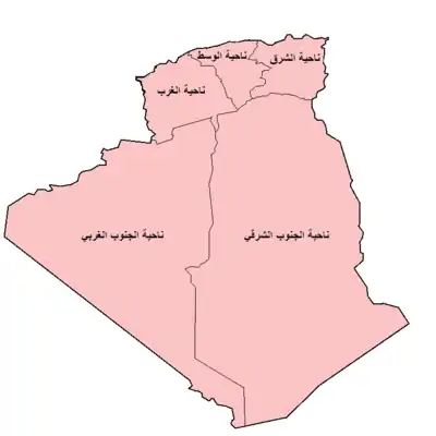 - ناحية الشرق: وتقع المراكز الجهوية للأمن بهذه الناحية بمدينة قسنطينة وتشرف على كامل ولايات شرق البلاد.