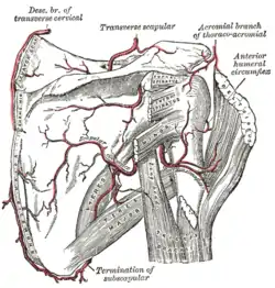 ![]() تحت الكتفية والشرايين المنعطفة(يظهر الشريان المنعطف الخلفي منتصف اليمين). تحت الكتفية والشرايين المنعطفة(يظهر الشريان المنعطف الخلفي منتصف اليمين). | |