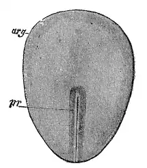 طول جنين بشري، 2 mm. صورة ظهرية، بالغشاء السلي مفتوحاً. X 30.