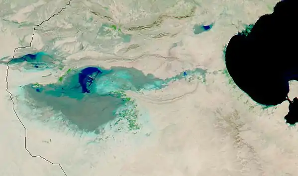 ![]() صورة فضائية تظهر موقع شط الجريد من الجنوب التونسي |