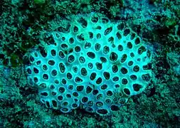 الإسفنج ضروري لعمل الشعاب المرجانية في هذا النظام. تنتج الطحالب والشعاب المرجانية مواد عضوية. يتم ترشيح ذلك من خلال الإسفنج الذي يحول هذه المادة العضوية إلى جزيئات صغيرة يتم امتصاصها بدورها بواسطة الطحالب والشعاب المرجانية.