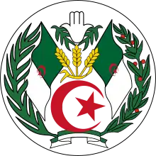 - شعار الدولة الجزائرية على الموقع الرسمي لقصر الرئاسة الجزائرية نسخة محفوظة 15 سبتمبر 2017 على موقع واي باك مشين.