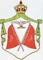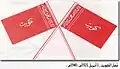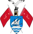 | الدرع | ترس يحوي سفينة تقليدية، أسفله صقر ودرع أصغر يحوي علم البلاد |