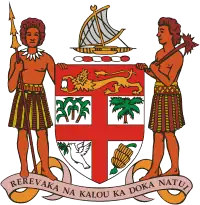 شعار فيجي هو شعار يتكون من درع مُقسّم رباعياً بصليب القديس جرجس ومشغول بأسد ذهبي في قمّته، ومدعوم من الجانبين باثنين من محاربي فيجي، ويعلو كل هذا زورق يمثّل تاجاً. تم اعتماد الشعار في 1908 بأمر ملكي ليكون شعار فيجي، وظل مستخدماً بعد الاستقلال عام 1970. ويظهر الشعار على علم فيجي.[1]