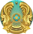 شعار كازاخستان، هو تمثيل للجزء العلوي لمنزل اليورت في سماء زرقاء تضيئها أشعة من الشمس.[1][2] ويحمل الجزء السفلي كلمة "ҚA3AҚCTAH" أي كازاخستان، ويتكون الشعار من اللونين الذهبي والأزرق السماوي.
