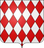 | الدرع | fusily (lozengy) فضي مع أحمر |