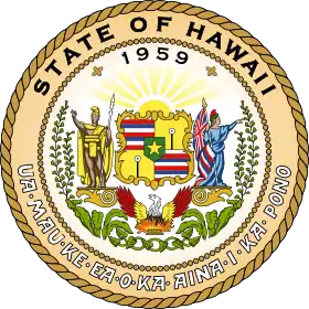 | كلمات مكتوبة | "State of Hawaii"، وهى تعني: ولاية هاواي، وإيضا "Ua Mau ke Ea o ka ʻĀina i ka Pono ، وتعني "حياة الأرض تدوم على البر " |