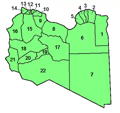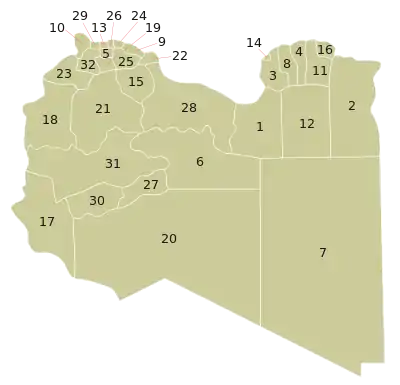 خريطة تبين مناطق ليبيا بدءاً من عام 2001.