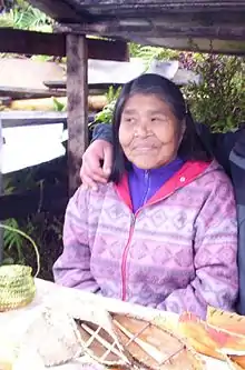 امرأة من الألاكالوف تبيع المصنوعات اليدوية للسياح في فيلا بويرتو إدان، الشيلي