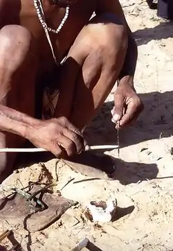 البوشمن شعب بدائي يعيش علي صيد الحيوانات وجمع الثمار، لا يزرع ولا يربي حيواناته، ويعيشون عرايا في مستعمرات متناثرة ويمتازون بمهارة الصيد بالحراب والسهام المسمومة والرماح والأفخاخ ويتناولون بيض النعام، ولهم فنونهم كالرسم والنقش لصور الحيوانات فوق جدران الكهوف والصخور وتتميز رسوماتهم بالدقة المتناهية والتناسق الهندسي الرائع والتعبير الرمزي المتقن، وقد كانوا يقيمون هذه الأعمال طوال تاريخهم، وكانت هذه الرسومات تصور حفلاتهم الطقوسية ورقصاتهم التقليدية.