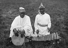 | صورة لرجلين من شعب السوسو مع آلات موسيقية تعود لعام 1935 |