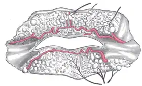 | الشريان المغذي | الشريان الشفوي السفلي، الشريان الشفوي العلوي |